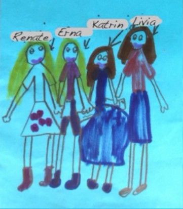 Dieses Blatt ist etwas weiter unten zur Gänze abgebildet. Hier wird ‚nur‘ ein Bildausschnitt aus diesem Blatt zur Rekonstruktion der Darstellung von Kooperation gezeigt (Abb. 26: Bildausschnitt ‚Vier Referentinnen‘ aus Blatt 6.5.2013: ‚Dromeda‘).